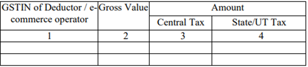| 4C | Supplies from an unregistered supplier | A registered taxpayer is to furnish details of all the supplies collected from an unregistered supplier which includes both interstate and intrastate supplies. |