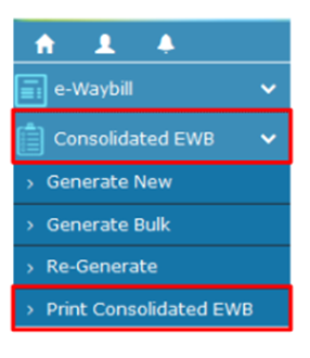 Step 1: You may click on ‘Print EWB’ under the ‘Consolidated EWB ‘ option.